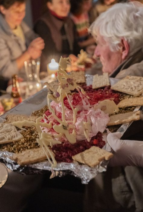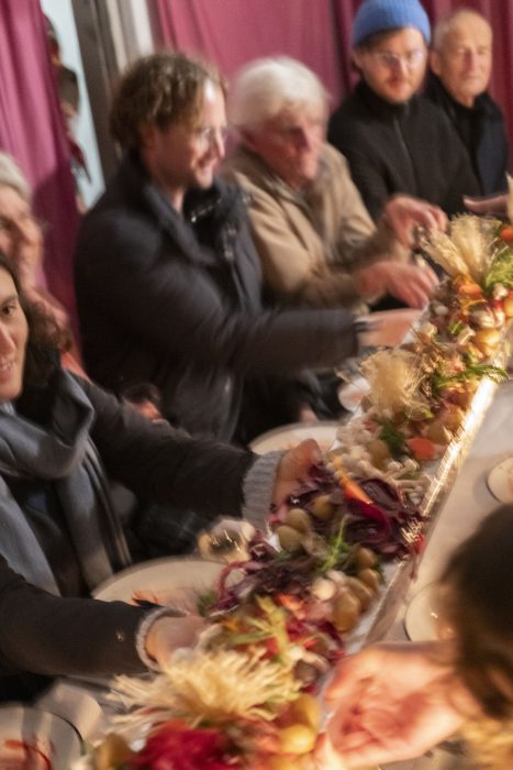 Dinner by chef and artist Paula Erstmann in the exhibition, I am the House, I said, 2024, Omstand – Space for Contemporary Art, Photo: Lisa Klosterkötter