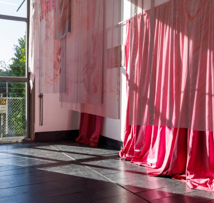 I am the house, I said takes the history of the former power station Ondrestation P.G.E.M. (now Omstand – Space for Contemporary Art) and its architecture as a starting point to reflect on energy sources, energy distribution and interconnectivity through text, drawings, garments and a performative reading.